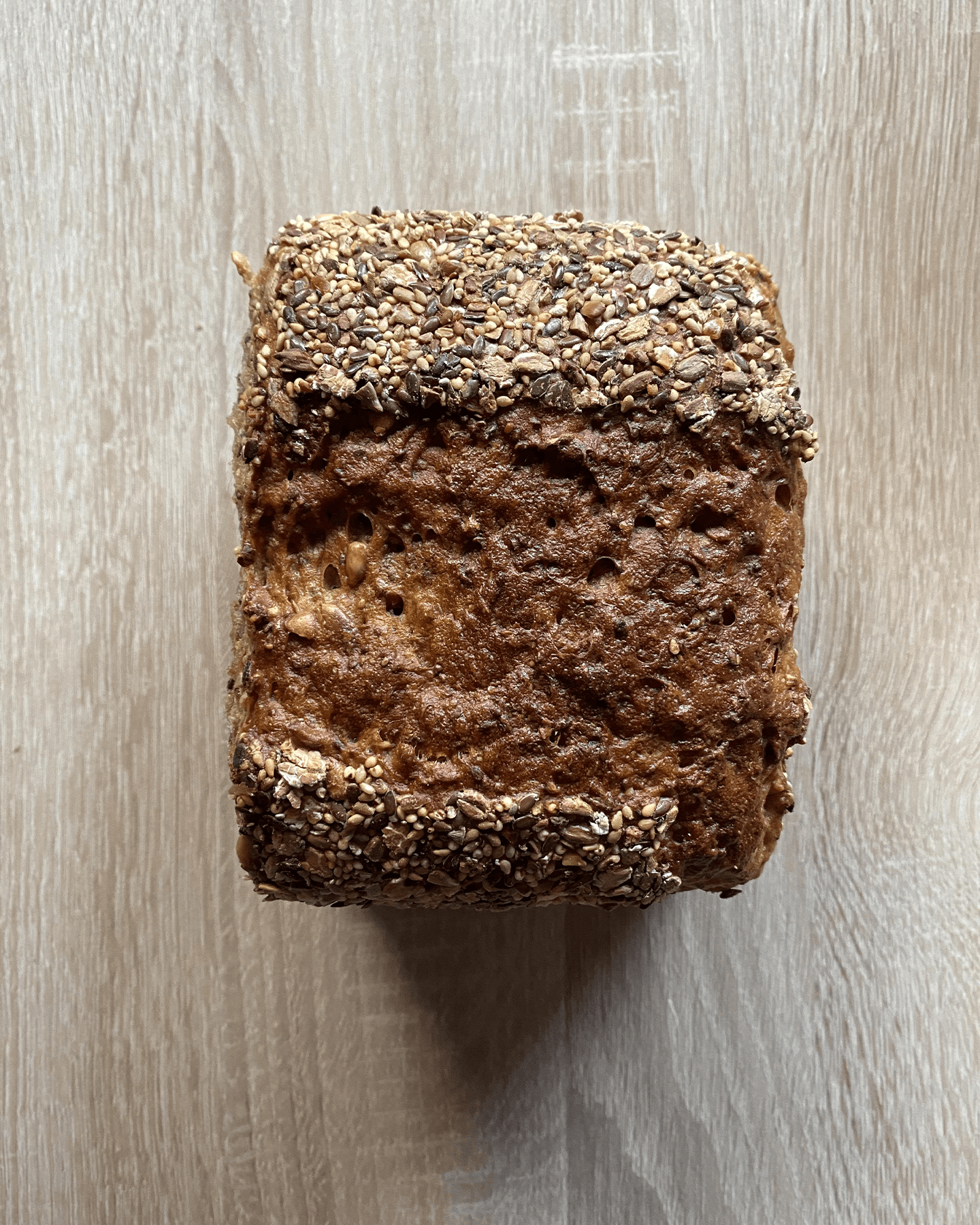 Chia-Samen, Kürbiskerne, Sonnenblumenkerne, Roggenflocken, Weizenmehl, Roggenmehl, Hefe, Salz, Wasser